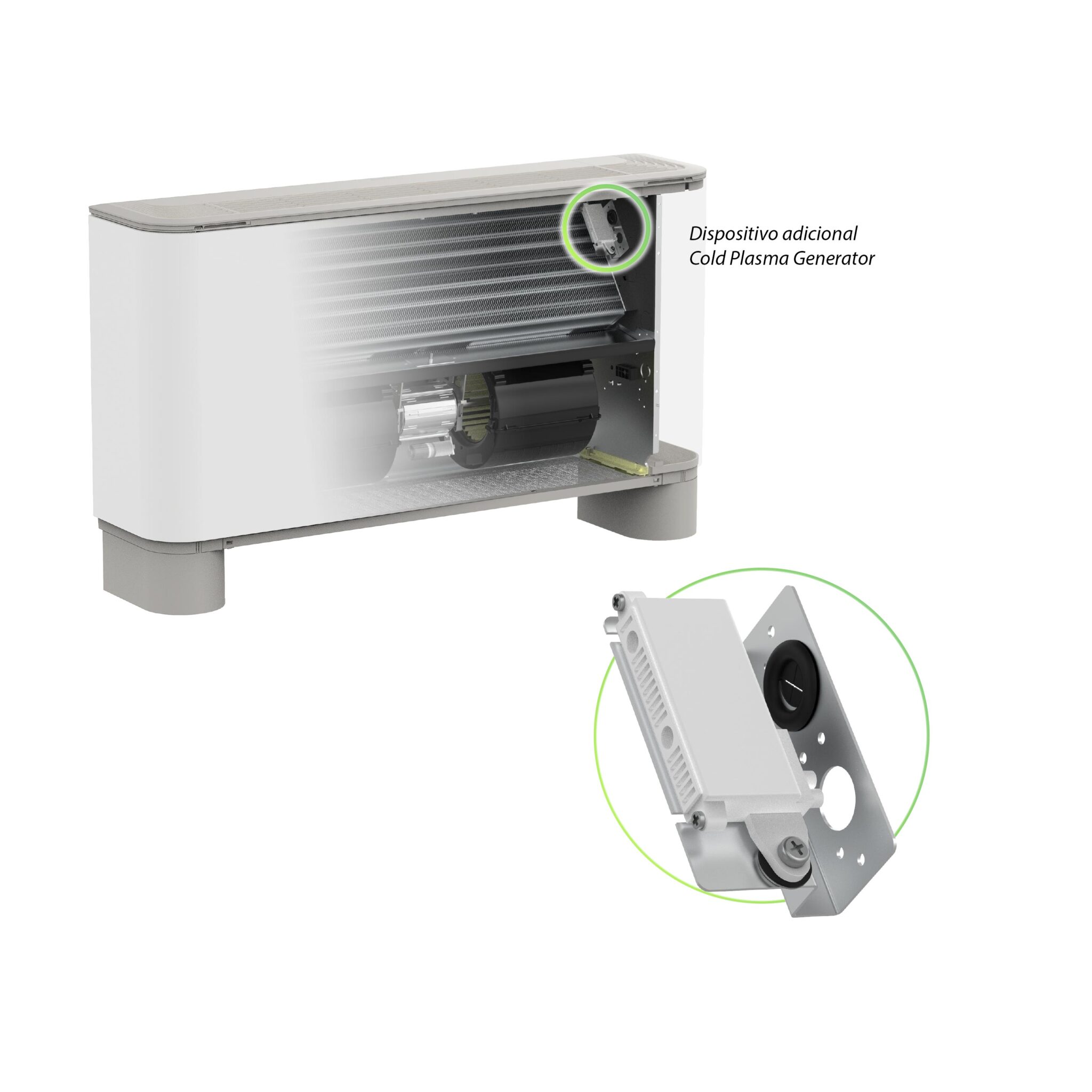 Varias gamas de fan coils y acondicionadores de ambiente, en múltiples versiones de instalación, incluyen el dispositivo Cold Plasma Generator. También disponible como accesorio para equipar fan coils compatibles ya instalados.
