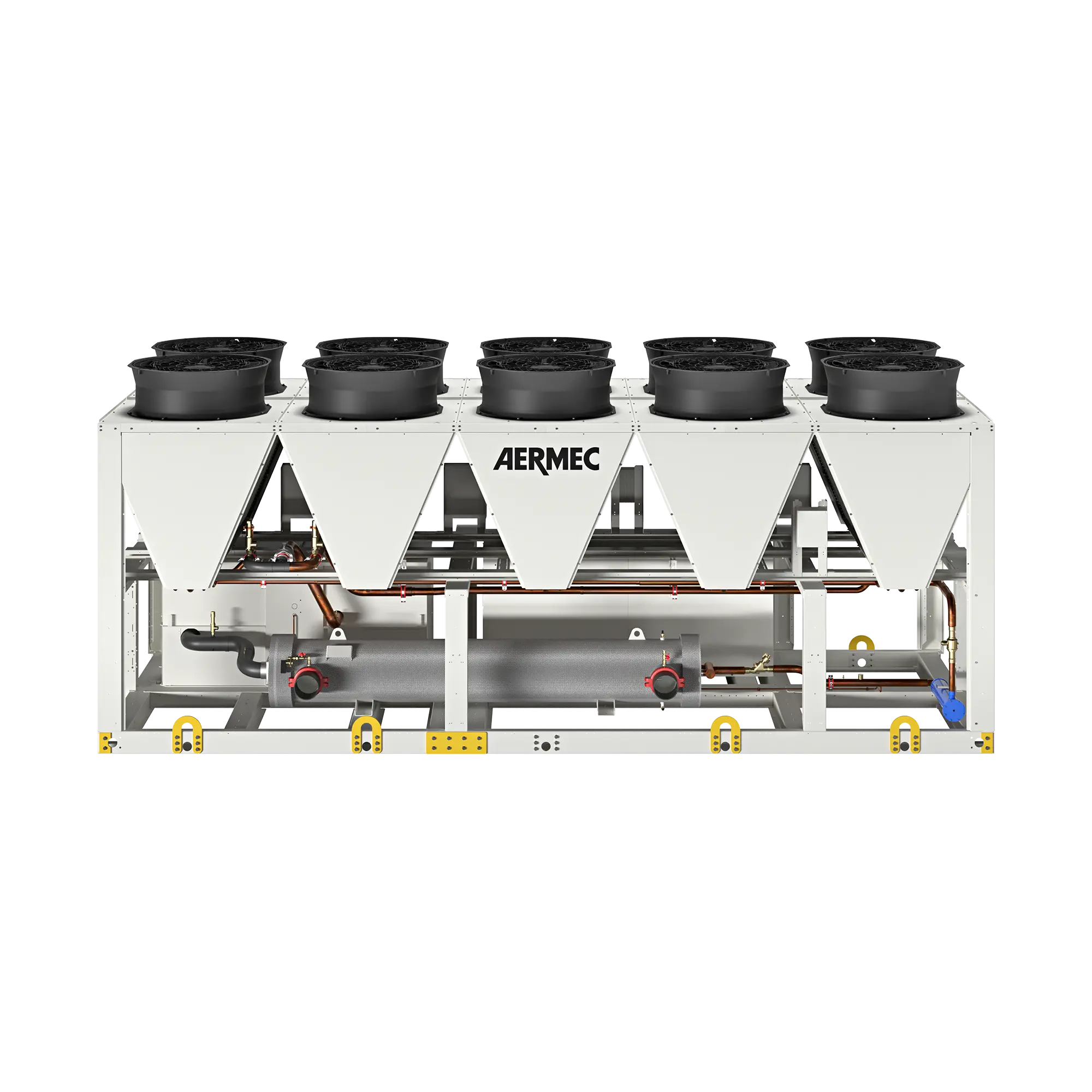 Unidad para el aire libre para la producción de agua refrigerada, equipada con compresores de tornillo de velocidad variable con inverter integrado, específicamente diseñados para el uso del refrigerante R513A. Las unidades están equipadas con ventiladores helicoidales, baterías de condensación de microcanal, evaporador de haz de tubos y válvula de expansión electrónica. La base, la estructura y los paneles están realizados en chapa de acero galvanizada y pintada con polvos de poliéster, lo que garantiza robustez y resistencia a los agentes atmosféricos. Un dispositivo de control de condensación optimiza el funcionamiento en función de las condiciones de funcionamiento. Gracias al cuidadoso diseño de los componentes y al uso de tecnologías de velocidad variable, la máquina garantiza la máxima eficiencia energética, fiabilidad y flexibilidad en todas las condiciones de trabajo.