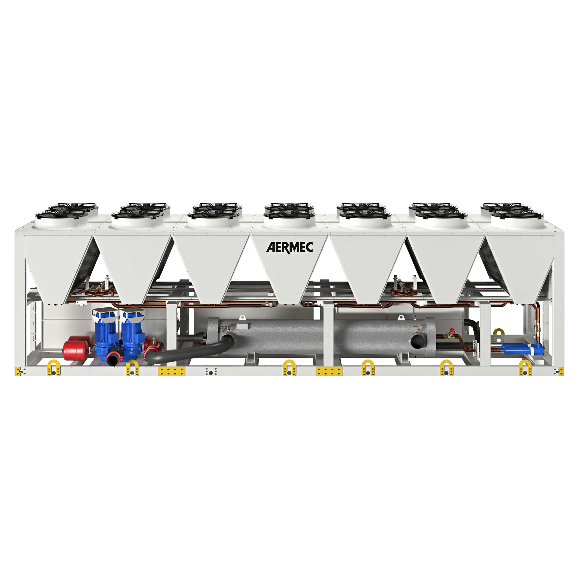 NSM è un refrigeratore a doppio o triplo circuito caricato con gas R134a, dotato di ventilatori assiali che assicurano il funzionamento più silenzioso possibile della macchina, compressori bi-vite, scambiatore a fascio tubiero e batterie a microcanali “V block”. Le unità con più circuiti frigoriferi sono progettate per fornire il massimo rendimento a pieno carico, garantendo elevate efficienze anche ai carichi parziali e assicurando continuità in caso di fermata di uno o più circuiti. La macchina raffredda acqua per alimentare l'impianto di distribuzione collegato tipicamente a terminali del tipo a ventilconvettore. NSM inoltre può allo stesso tempo produrre acqua calda sanitaria, se dotato di desurriscaldatore o recupero totale, trovando quindi applicazione in ambiti del tipo residenziale, commerciale e industriale. Può essere inoltre in versione standard, silenziato, ad alta e altissima efficienza.