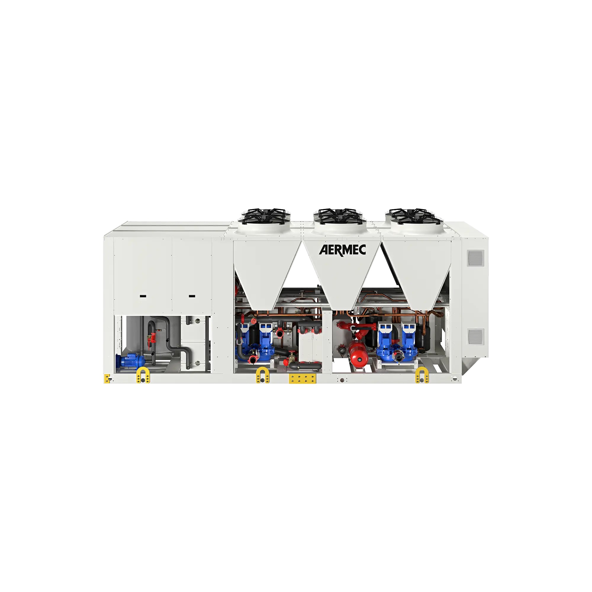 Le unità multi-funzione CPS, realizzate ottimizzando l’abbinamento impiantistico tra una unità polivalente aria-acqua a 4 tubi serie NRP e una pompa di calore acqua-acqua ad altissima temperatura serie WWB, sono state progettate per rispondere alle esigenze degli edifici residenziali e delle strutture ricettive che richiedono la contemporanea disponibilità di riscaldamento e raffrescamento e di acqua ad alta temperatura (in uscita dalla macchina fino a 73°C) per esigenze di riscaldamento e/o produzione A.C.S. Queste unità sono anche impiegabili all'interno di processi industriali di varia tipologia. Sono formate da 4 circuiti frigoriferi, 2 circuiti (C1/C2) con gas R410A, 2 circuiti (C2/C3) con gas R134a, 3 scambiatori a piastre, 1 Scambiatore a piastre per l'acqua refrigerata, 1 Scambiatore a piastre per l'acqua calda a media temperatura, 1 Scambiatore a piastre in inox ispezionabile per l'acqua calda ad alta temperatura (A.C.S.) Il basamento la struttura e la pannellatura sono in acciaio zincato trattato con vernici poliestere RAL 9003.